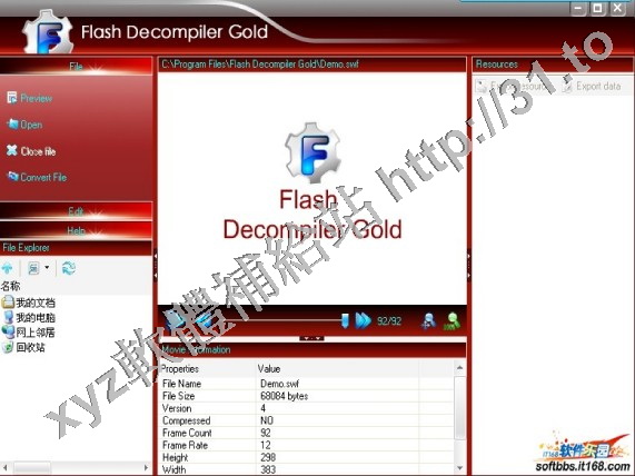 動畫分解成圖片、文字、聲音、字體、層等,有准你重新修改和編輯!軟體操作非常簡單。