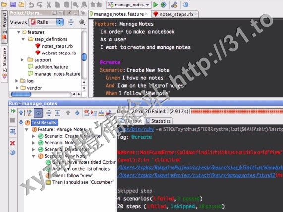 -- RSpec 和 Test::Unit 測試框架支援 - 具有基於 GUI 的測試運行工具。