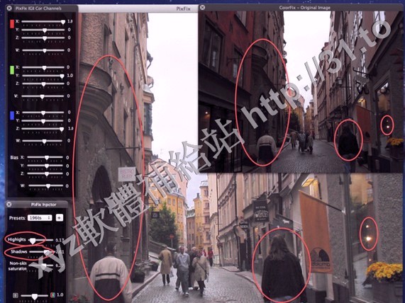 顏色通道的控制,突出控制的地區,陰影,皮膚