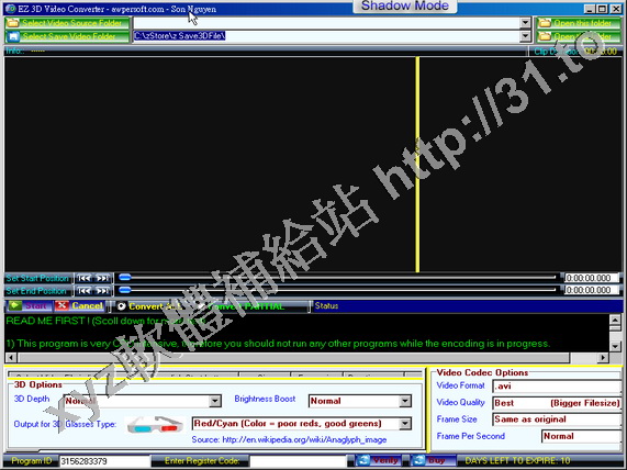 簡單易用的視頻轉換軟體。可以將你喜愛的二維視頻轉換為三維視頻。要求至少雙核處理器,