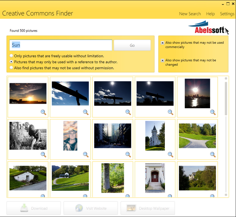 it finds pictures published under the Creative