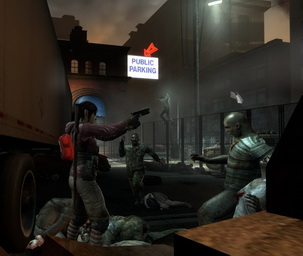 大批感染者將拚命襲擊玩家,玩家可利用頂樓架設的固定機槍座來防守,最後還得與「